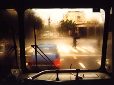 photograpiée de l'avant d'un bus Egged qui roule vers la Poste Centrale. Haifa grimpe sur une colline (le Mont Carmel) en face de la mer. C'est une ville à trois niveaux, trois centre-villes se succèdent pendant qu'on monte : en bas, le long du port, des immeubles de bureaux occupés principalement par les affaires maritimes ; Hadar - où cette photo a été prise - un peu plus "plein-centre" en réalité ; et Merkaz Hacarmel en haut, plus résidentiel. Les trois centres sont aussi reliés par cinq stations de funiculaire souterrain, appelé Carmelite. Il vient de France, et parfois on a l'impression d'être aspiré de Haifa directement vers le métro Parisien.