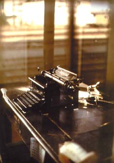 à la station de train de Lod. La ville de Lod est voisine de l'Aéroport Ben Gurion, le lien principal d'Israël avec le reste du monde. La gare s'est développée à une vitesse bien moins trépidante - la station a été construite à l'époque turque. C'est ces lignes de chemin de fer que Lawrence d'Arabie avait pris l'habitude de faire sauter. Qui sait, le bâtiment et la machine à écrire sont peut-être encore là-bas, bien que la photo ait été prise à la fin des années soixante-dix.
